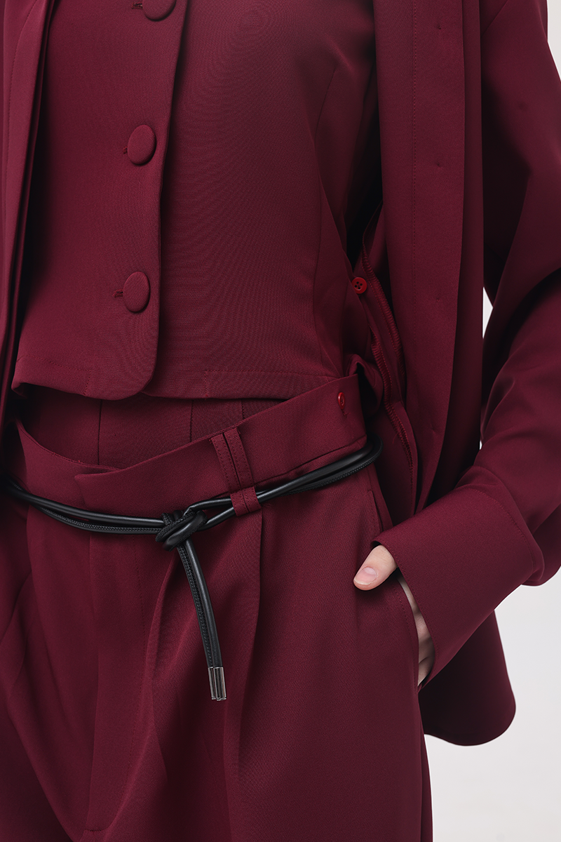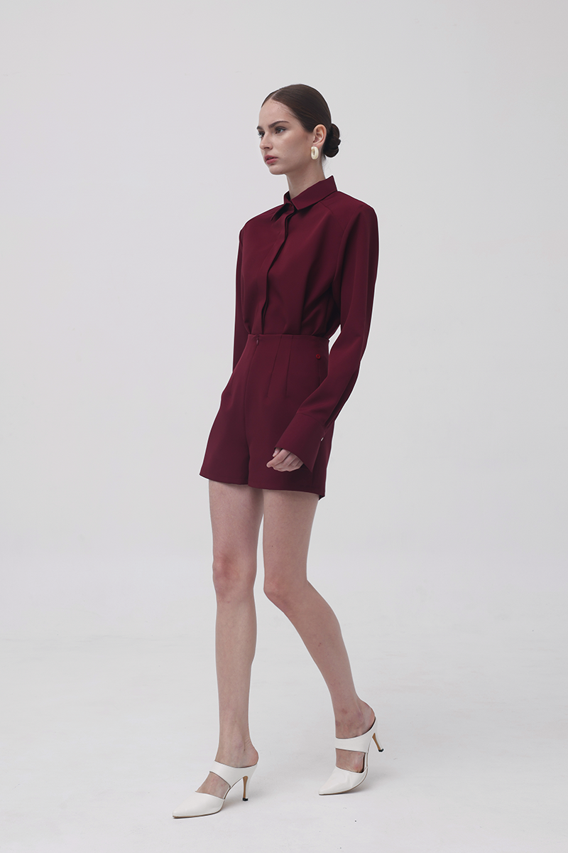 Wear the trousers on their own for a strong yet minimal tailored look, or switch to shorts for a lighter, more playful mood. Layering them together creates a sculptural, editorial feel—especially when styled asymmetrically. Ideal for evenings out, semi-formal gatherings, or days when you want a statement color that remains polished and wearable.